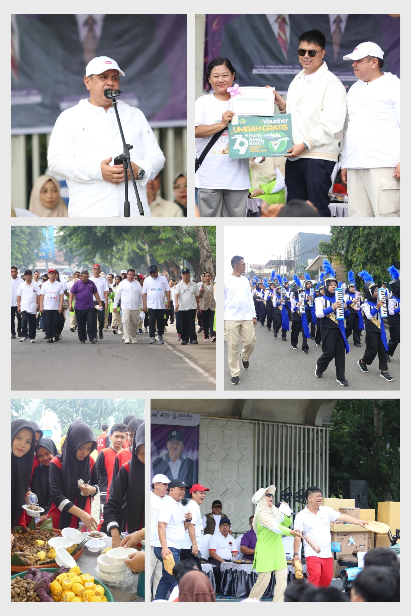Para peserta yang telah sampai di Kantor Walikota Jambi pun dipersilakan menikmati makanan rebus gratis, seperti kacang, jagung, dan ubi jalar sembari menikmati acara di depan panggung. Tampak beragam kotak-kotak hadiah menarik di atas panggung, yang berisi TV, HP, kulkas, dispenser, mesin cuci, blender, magic com, kipas angin, karpet, dan peralatan dapur. Hanya sepeda goes, sepeda listrik, voucher makan di hotel ternama, voucher belanja di mall terkemuka, dan hadiah utama paket perjalanan umroh gratis yang terpampang nyata.