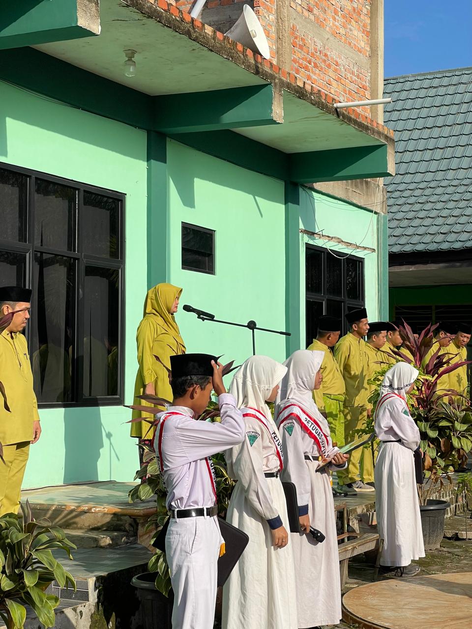 Namun, ada yang berbeda dalam peringatan kali ini. Para guru dan staf tata usaha kompak mengenakan pakaian melayu berwarna lemon karena bertepatan dalam momentum perayaan ulang tahun Kota Jambi ke-79. Mengenakan pakaian melayu yang merupakan identitas budaya masyarakat Jambi bukan hanya soal estetika, tetapi juga merupakan pernyataan cinta yang mendalam terhadap identitas lokal dan kebanggaan menjadi bagian dari Indonesia.