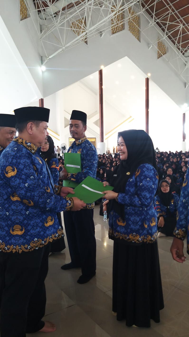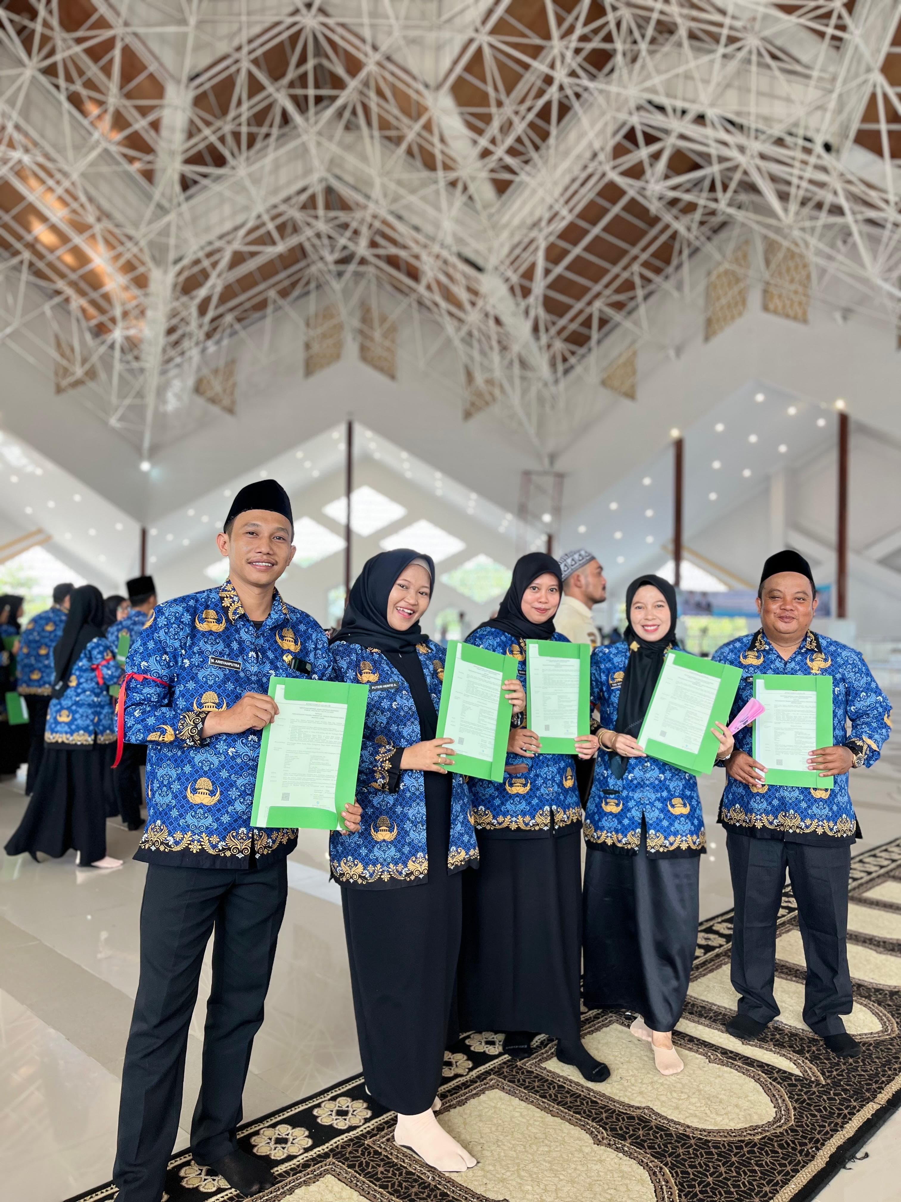 Kota Jambi - Suasana haru, penuh syukur, dan kebahagiaan mewarnai Aula Masjid Raya Islamic Center Tsamaratul Insan Kota Jambi pada Senin (26/5/2025). Sebanyak enam pegawai MTs N 3 Kota Jambi resmi dilantik menjadi Pegawai Pemerintah dengan Perjanjian Kerja (PPPK) oleh Kepala Kantor Wilayah Kementerian Agama Provinsi Jambi.