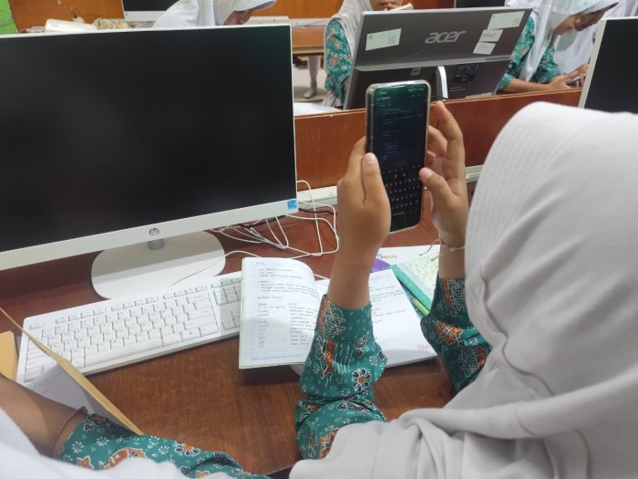 Suasana kelas tampak hidup ketika siswa berhasil menampilkan hasil karya digital mereka di layar ponsel. Salah seorang siswa mengungkapkan pengalamannya, Awalnya coding terlihat sulit, tapi setelah mencoba ternyata seru dan membuat kita lebih paham bagaimana sebuah website bisa terbentuk.