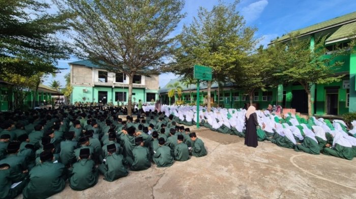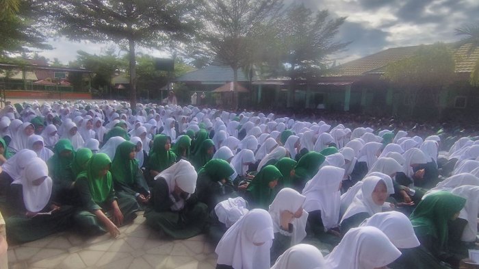 kota Jambi - MTsN 3 Kota Jambi menyelenggarakan kegiatan Yasinan bersama yang diikuti oleh seluruh warga madrasah pada Jumat (3/10/2025). Agenda yang dilaksanakan di lapangan madrasah tersebut merupakan program rutin dua mingguan sebagai bentuk pembinaan keagamaan dan penguatan karakter religius.