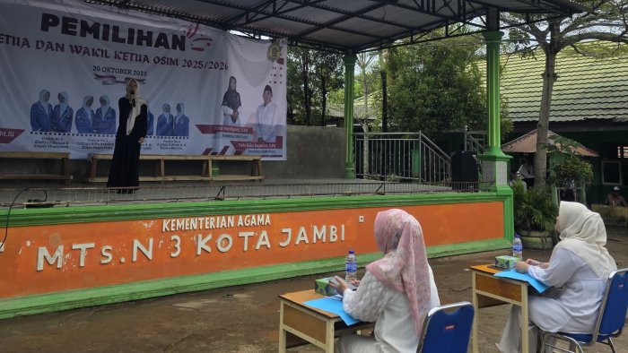Kota Jambi - Dalam rangka memperingati Hari Sumpah Pemuda, mahasiswa Program Latihan Profesi (PLP) UIN Sulthan Thaha Saifuddin Jambi bersama OSIM MTsN 3 Kota Jambi menyelenggarakan serangkaian lomba bertema islami dan kebangsaan. Kegiatan ini berlangsung selama tiga hari, dari tanggal 20 hingga 22 Oktober 2025, dan diikuti dengan antusias oleh seluruh siswa dari 27 kelas.