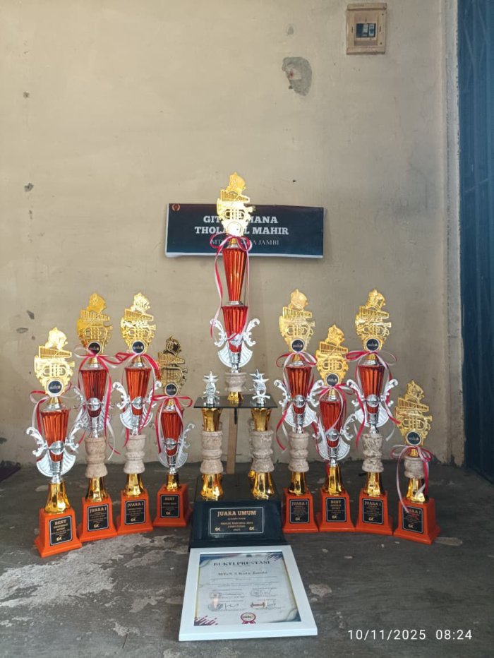 KOta Jambi - Dentuman drum dan deru semangat menggema di dalam GOR JPOK Universitas Jambi pada akhir pekan, 8-9 November 2025. Di antara puluhan peserta yang tampil, sorotan mata penonton tertuju pada satu tim yang tampil penuh energi dan percaya diri, Gita Bahana Tholabul Mahir (GBTM) dari MTs Negeri 3 Kota Jambi. Dengan formasi rapi dan hentakan ritme yang padu, mereka berhasil menorehkan prestasi membanggakan, yakni Juara Umum Divisi Senior di ajang Siginjai Marching Arts Competition (SMAC) 2.