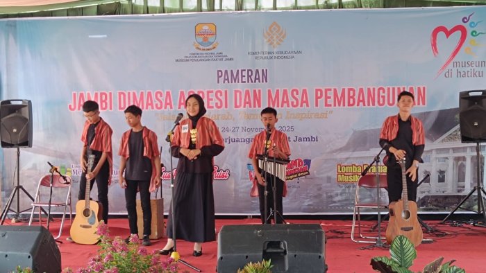Kota Jambi - Sejarah tidak selalu hadir dalam barisan angka dan tahun. Ia kadang menjelma menjadi suara mengalun pelan melalui bait puisi, hidup dalam irama musik, dan menyentuh hati siapa saja yang mendengarnya. Di pelataran Museum Perjuangan Rakyat Jambi, sejarah itu kembali bernapas, dipertemukan dengan generasi muda yang merayakannya lewat seni.