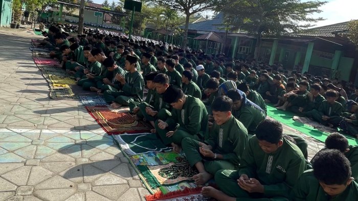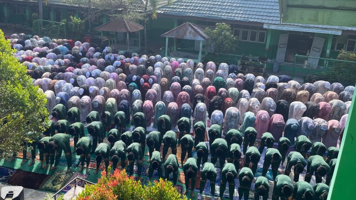 Kota Jambi - Suasana penuh kekhusyukan terasa di lapangan MTsN 3 Kota Jambi pada Jumat, (27/02/2026) pukul 08.00 WIB. Seluruh siswa dan guru mengikuti kegiatan sholat duha bersama yang dilaksanakan sebagai bagian dari pembinaan keagamaan di bulan Ramadan.
