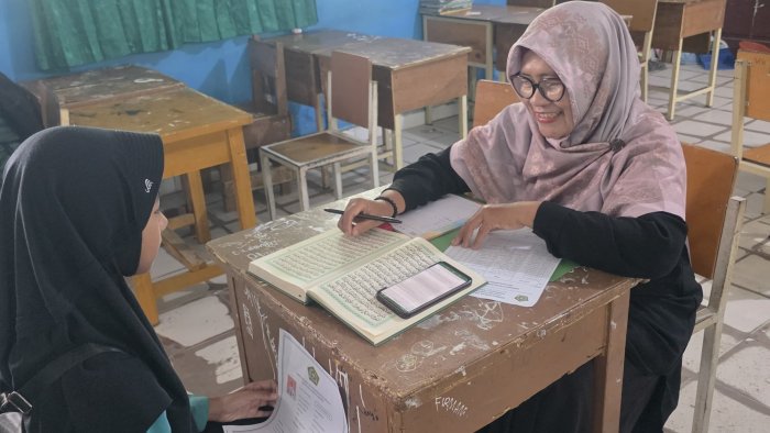 Kota Jambi, Jumat 13 Maret 2026 - Madrasah Tsanawiyah Negeri (MTsN) 3 Kota Jambi melaksanakan kegiatan tes baca Al-Qur'an dan wawancara bagi calon peserta didik baru melalui PMBM jalur reguler. Kegiatan dimulai pada pukul 07.30 WIB di lingkungan madrasah dengan ketentuan peserta mengenakan pakaian muslim.