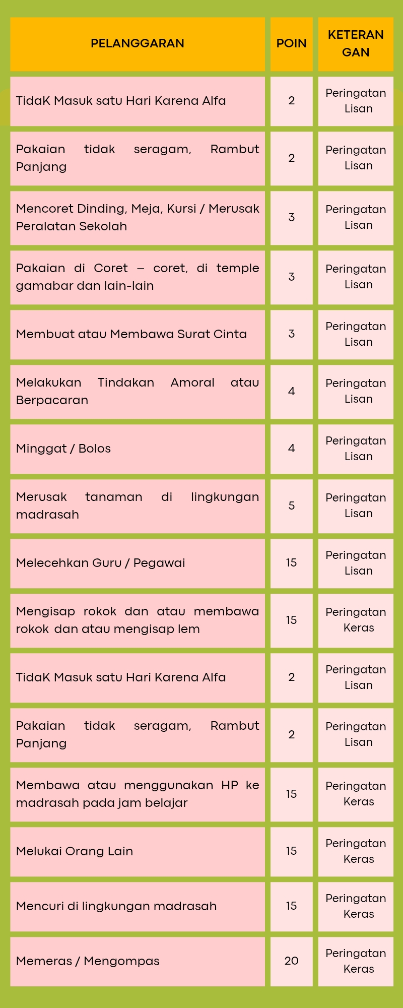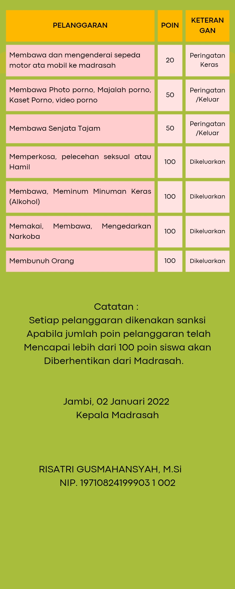 Tata Tertib Madrasah